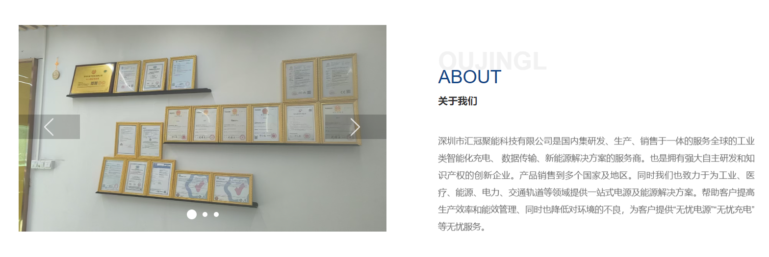 深圳市匯冠聚能科技有限公司是國(guó)內(nèi)集研發(fā)、生產(chǎn)、銷售于一體的服務(wù)全球的工業(yè)類智能化充電、 數(shù)據(jù)傳輸、新能源解決方案的服務(wù)商。也是擁有強(qiáng)大自主研發(fā)和知識(shí)產(chǎn)權(quán)的創(chuàng)新企業(yè)。產(chǎn)品銷售到多個(gè)國(guó)家及地區(qū)。