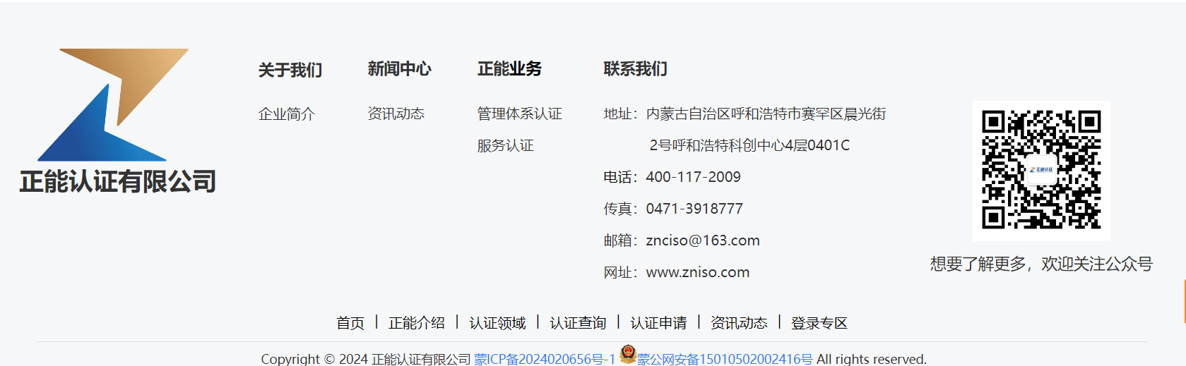 正能認(rèn)證有限公司(簡稱正能認(rèn)證,英文縮寫ZNC)成立于2023年,經(jīng)國家認(rèn)證認(rèn)可監(jiān)督管理委員會權(quán)威備案批準(zhǔn),具備從事集質(zhì)量管理、環(huán)境管理、職業(yè)健康安全管理等多體系服務(wù)的專業(yè)化認(rèn)證公司。