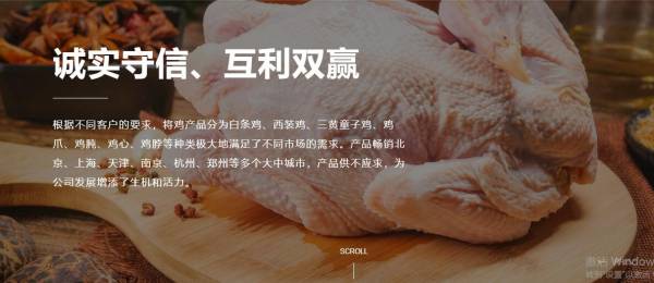 公司恪守“質(zhì)量取勝、信譽至上”的原則,秉承“誠實守信、互利雙贏”的經(jīng)營理念,以優(yōu)質(zhì)的產(chǎn)品質(zhì)量、至誠的商業(yè)信譽回報客戶,以完善規(guī)范的管理體制、健全齊備的服務(wù)網(wǎng)絡(luò)面向市場,以提升企業(yè)核心競爭力為基礎(chǔ),以提高品質(zhì)為追求。適銷對路的產(chǎn)品,帶來了企業(yè)良好的效益。根據(jù)不同客戶的要求,將雞產(chǎn)品分為白條雞、西裝雞、三黃童子雞、雞爪、雞肫、雞心、雞脖等種類極大地滿足了不同市場的需求。產(chǎn)品暢銷北京、上海、天津、南京、杭州、鄭州等多個大中城市,產(chǎn)品供不應(yīng)求,為公司發(fā)展增添了生機和活力。